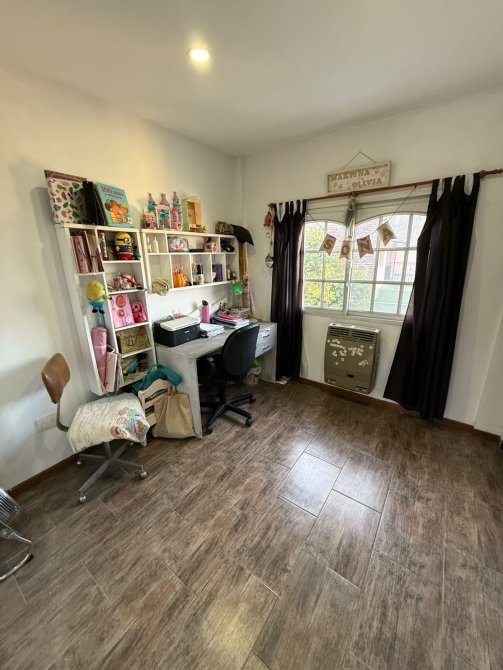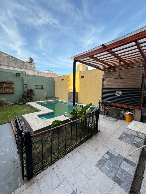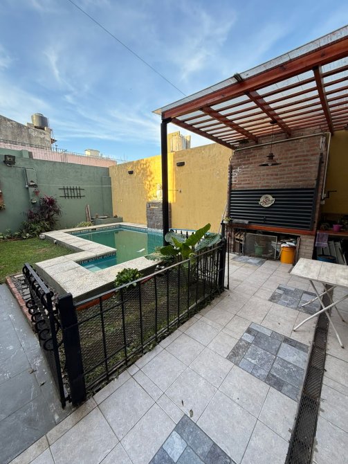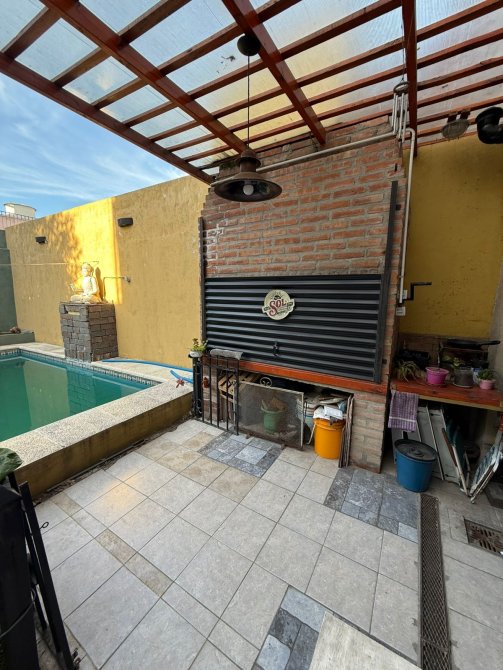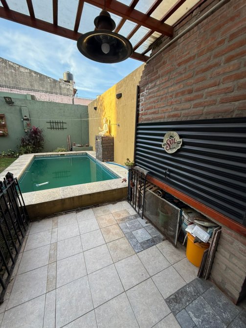 Casa 4 ambientes con garage para 2 autos y fondo libre, compuesta de 3 dormitorios, amplio living comedor, cocina completa con isla, comedor diario, 2 baños completos (1 en suite), lavadero cubierto, patio 8x6 mts2 aprox., garage para 2 autos,, fondo libre 8.66x9 mts2 aprox. con moderna piscina, toilette y baño se servicio. Porton automatizado, parrilla techada, quincho y terraza.
